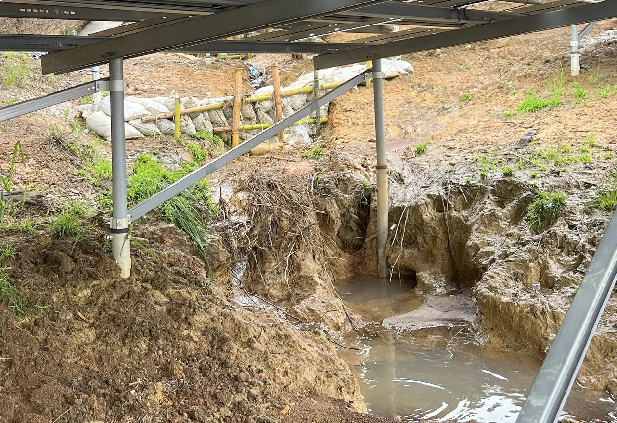 Heavy rainfall can cause erosion around foundation piles due to poor drainage and site preparation